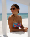 A classic bandeau strapless, thoughtfully made with non-slip grip and adjustable back ties